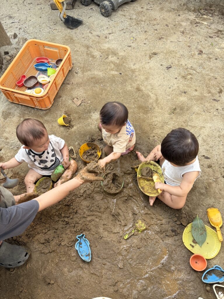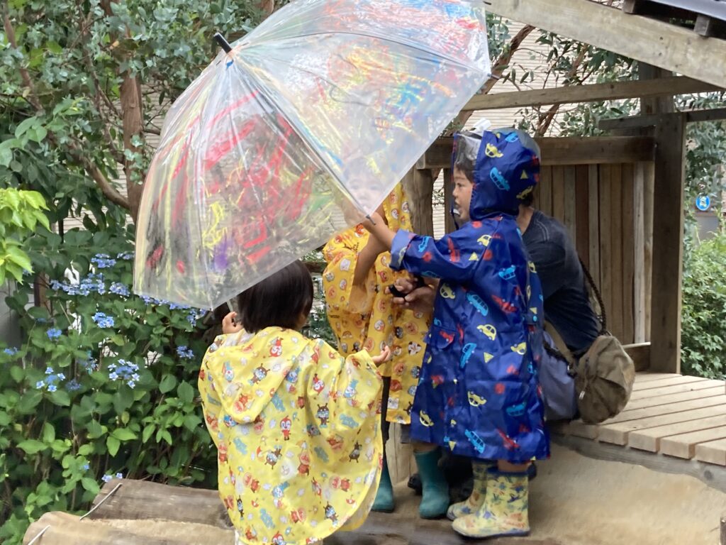 このようなテーマをかかげて保育に取り組んでいるため、『今日は晴れたから、散歩に森にいこう』なんて子がいれば、森にいきますし、『今日は雨だから水たまりでバシャバシャ遊びたい』時にはどろんこで帰るなんてこともしばしばあります。